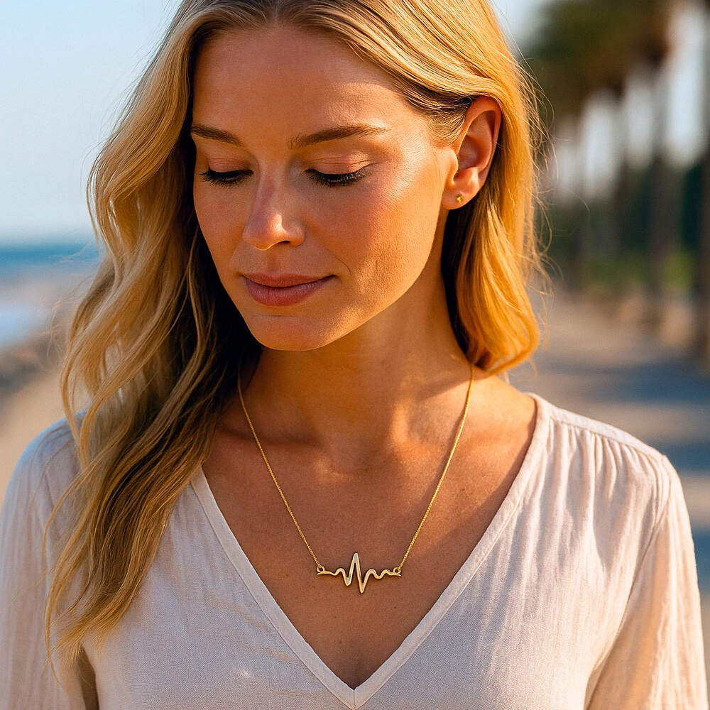 Inspirado no traçado de um batimento cardíaco, este colar simboliza amor, conexão, vida e intensidade emocional. Seu design minimalista e contemporâneo transforma a peça em uma joia elegante, discreta e cheia de significado, perfeita para quem valoriza acessórios com propósito.