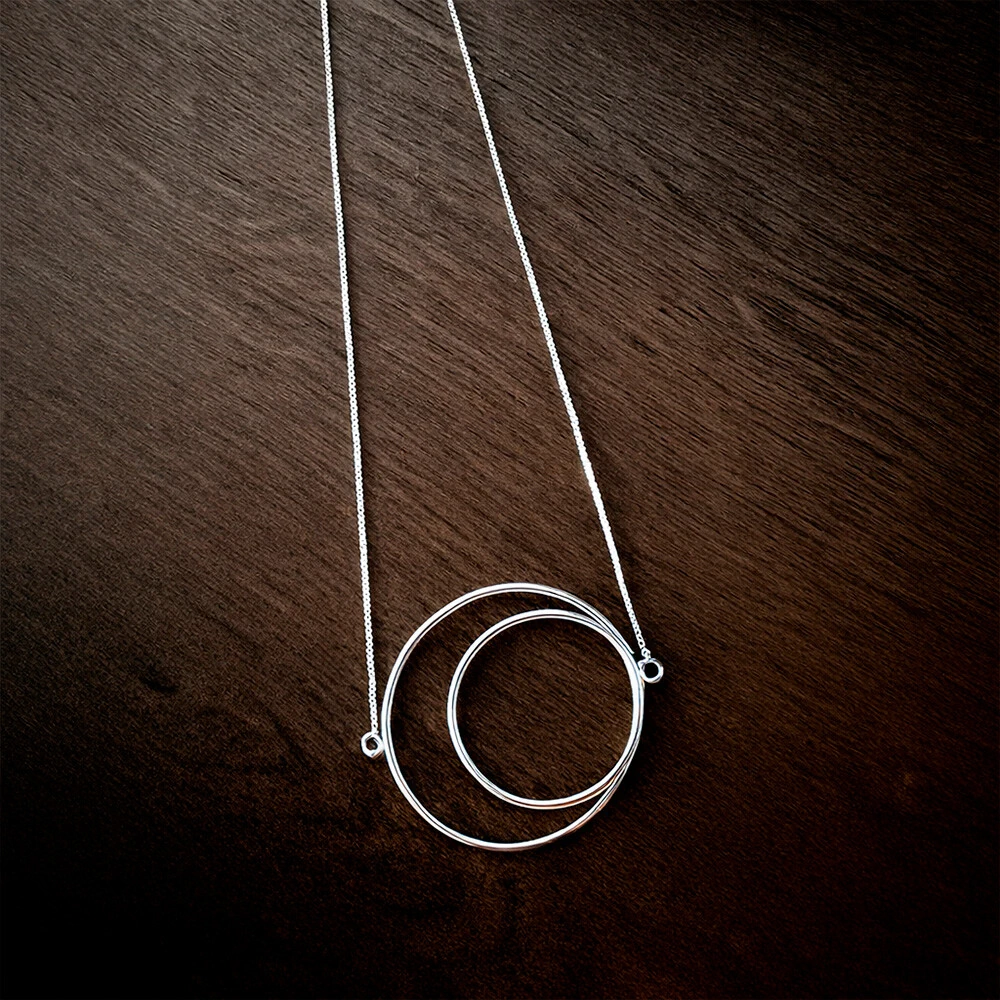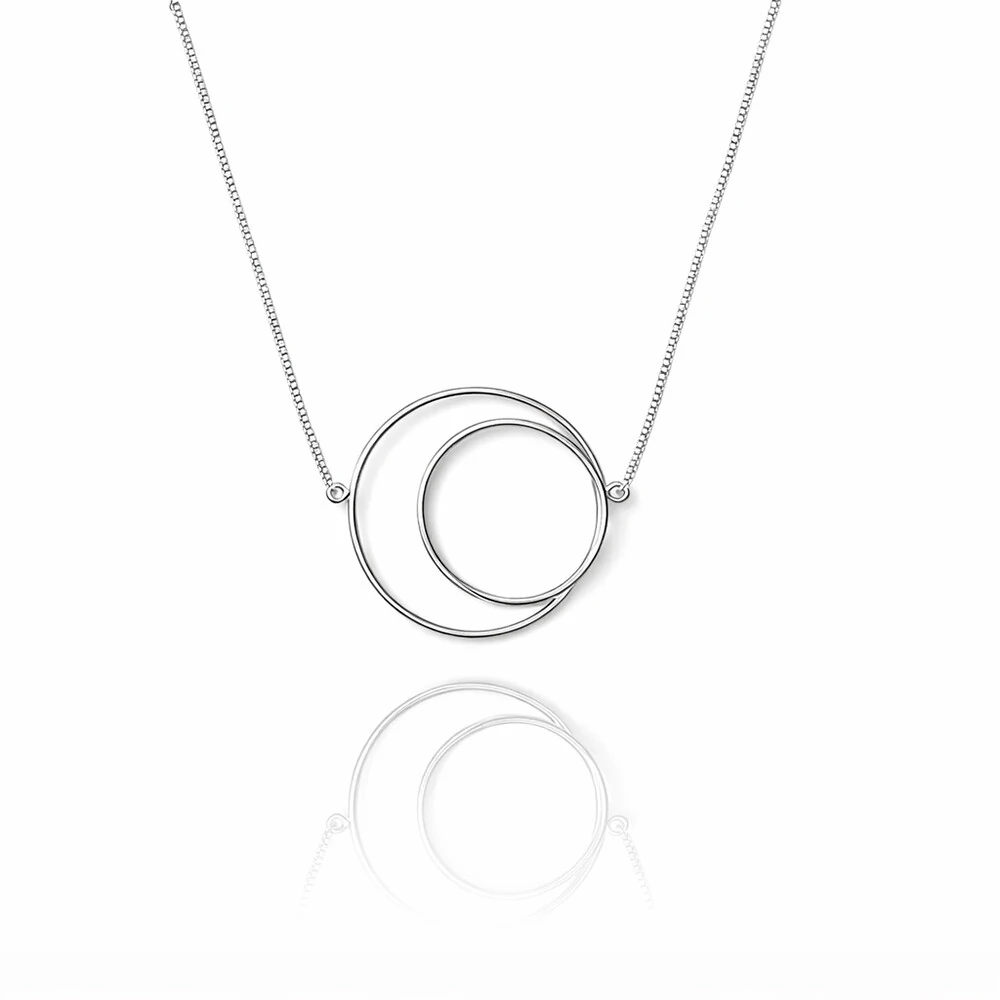O Colar Eclipse em Ouro Branco traduz a harmonia entre forma, significado e elegância atemporal. Seu design de círculos entrelaçados simboliza conexão, continuidade e encontros que deixam marcas — um conceito forte para quem valoriza joias com propósito.